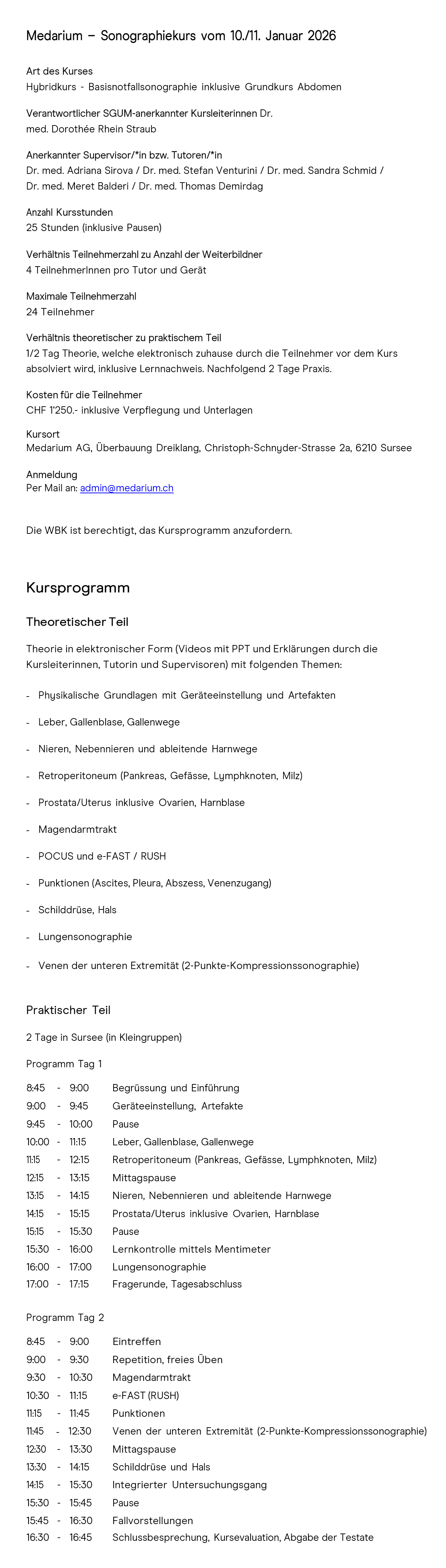 Der nächste Sonographiekurs findet vom 10.-11. Januar 2026 statt.